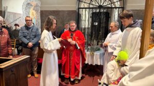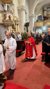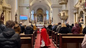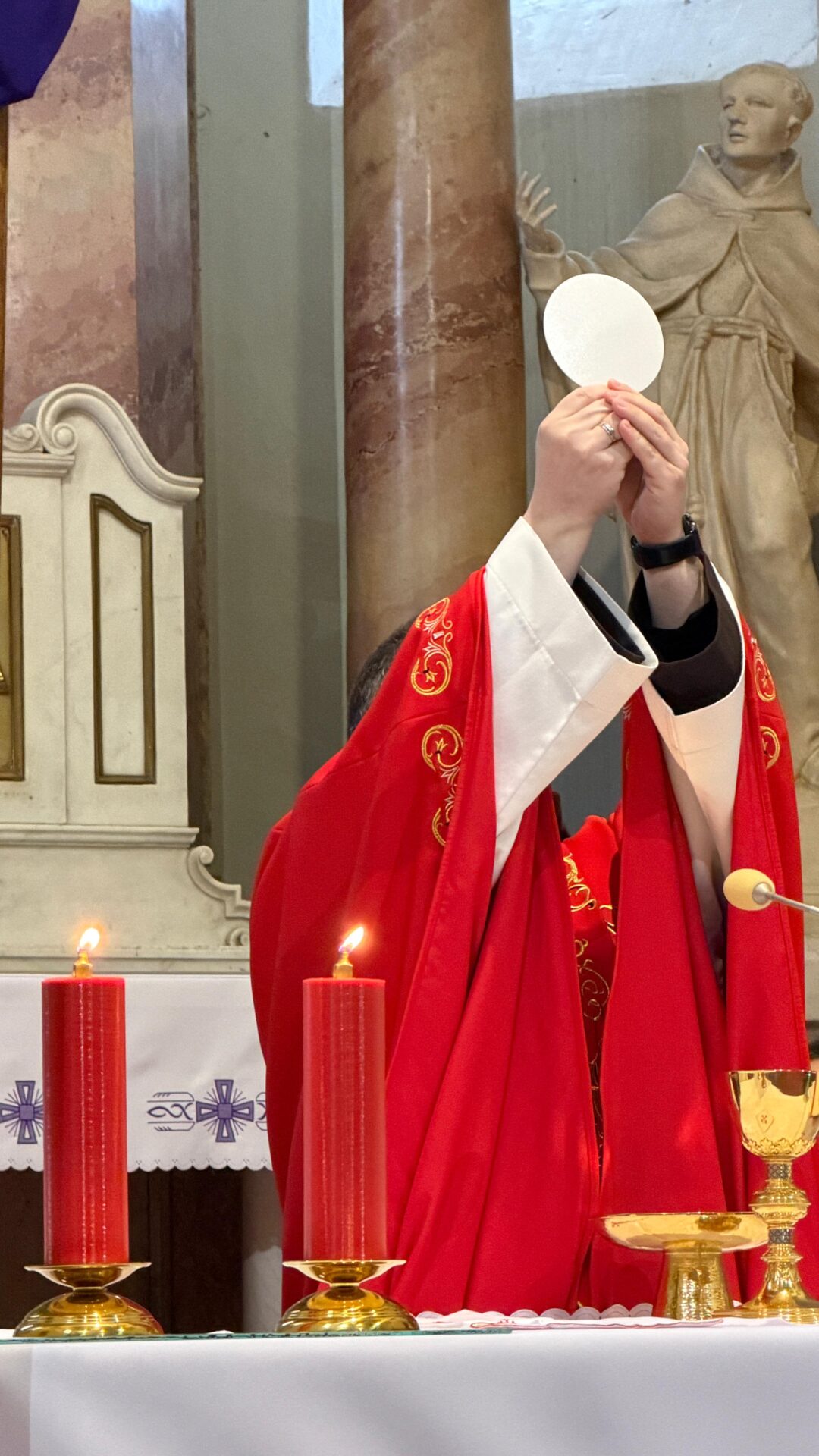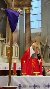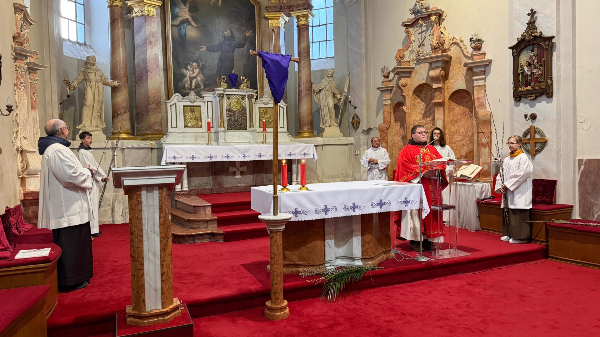 Tieto slová dnes znejú na úvod liturgie Kvetnej nedele, ktorú sme spolu s veriacimi slávili v Nových Zámkoch. Potom, ako sme na úvod požehnali, ratolesti, nás náš spevácky zvor svojimi tónmi spevu priviedol v procesii k oltáru, kde sme pokračovali v slávení Pánovej obety. Pašiová správa dnešného Evanjelia zarazila všetkých prítomných veriacich, keď chrámom znejúce sa “Hosanna” sa razom zmenilo na “Ukrižuj ho”….. Tento ortieľ našich hriešnych úst nad Ježišom Kristom bol prerušený razantným tichom, ktoré zaplnilo chrám potom, ako sme počuli, že Pán odovzdal ducha svojmu Otcovi. Je to hlboká bolesť, keď si uvedomíme, že túto ukrutnú smrť spôsobil každý z nás. Aj deti, ktoré boli prítomné na sv. omši, sa v detskej katechéze zrozumiteľným jazykom stretli so správou o Ježišovom slávnom vstupe do Jeruzalema na malom oslíku, ako aj to, že Pán Ježiš prišiel do tohto mesta, aby svojou obetou života za nás splnil vôľu svojho Otca.