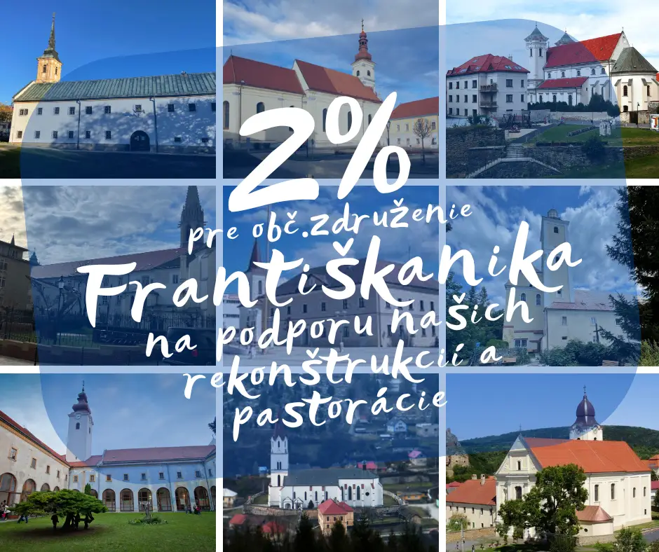 Aj tento rok vás ako františkáni žiadame o podporu formou darovania 2-3% z vašich daní. Tento rok je možné poukázať darovanie tak nášmu občianskemu združeniu o.z. GIFRA na podporu mladých ako aj o.z. Františkanika.