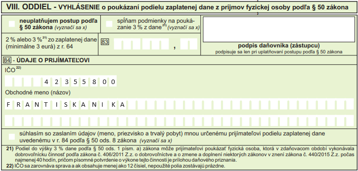 Pri vypĺňaní Daňového priznania vyplňte VIII. Oddiel nasledovne: