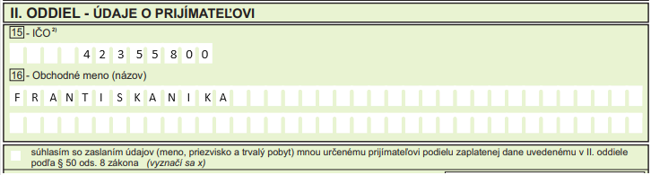Obchodné meno (Názov): FRANTIŠKANIKA - Obe tieto tlačivá zašlite na príslušný daňový úrad (v niektorých prípadoch stačí nechať obe tlačivá u zamestnávateľa, ktorý doručí tieto tlačivá na daňový úrad)